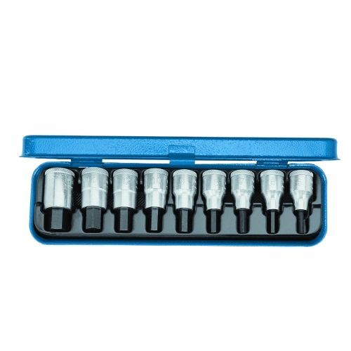 Screwdriver bit socket set 1/2" 9 pcs in-hex 5-17 mm